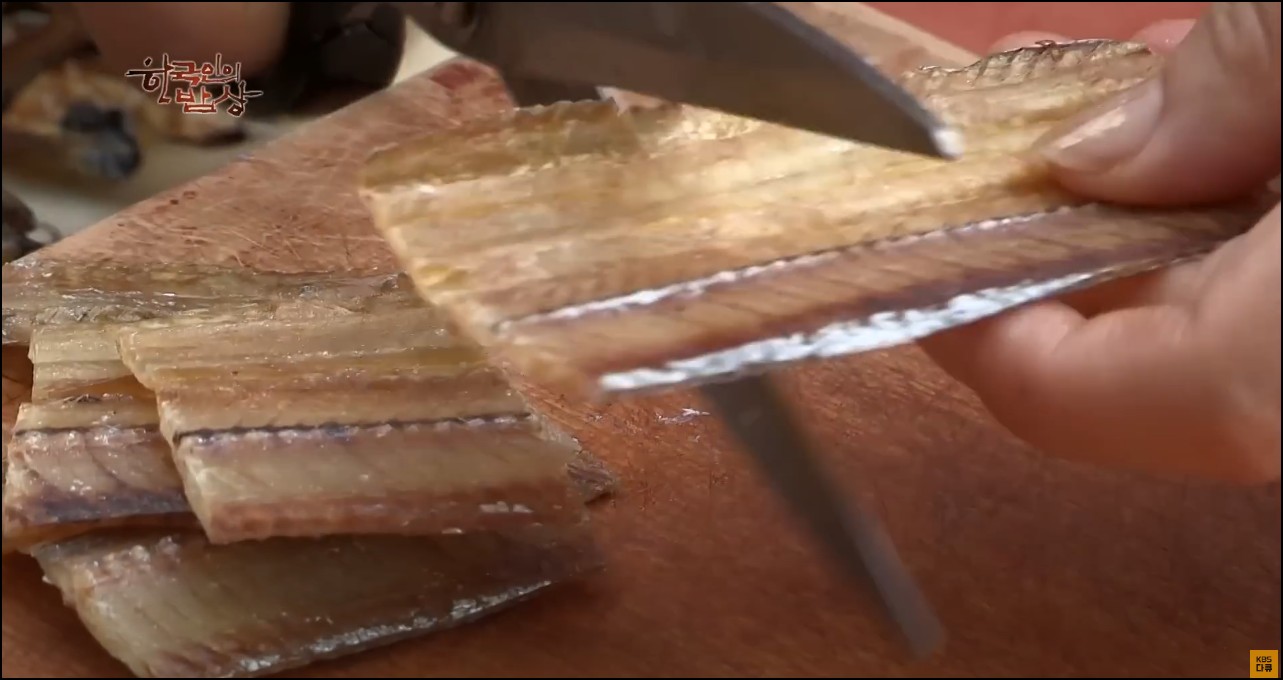 굽는 장면은 안나와서 잘 모르겠지만 직화로 쥐포굽듯이 살짝 굽는 방법이 아닐까 싶은....