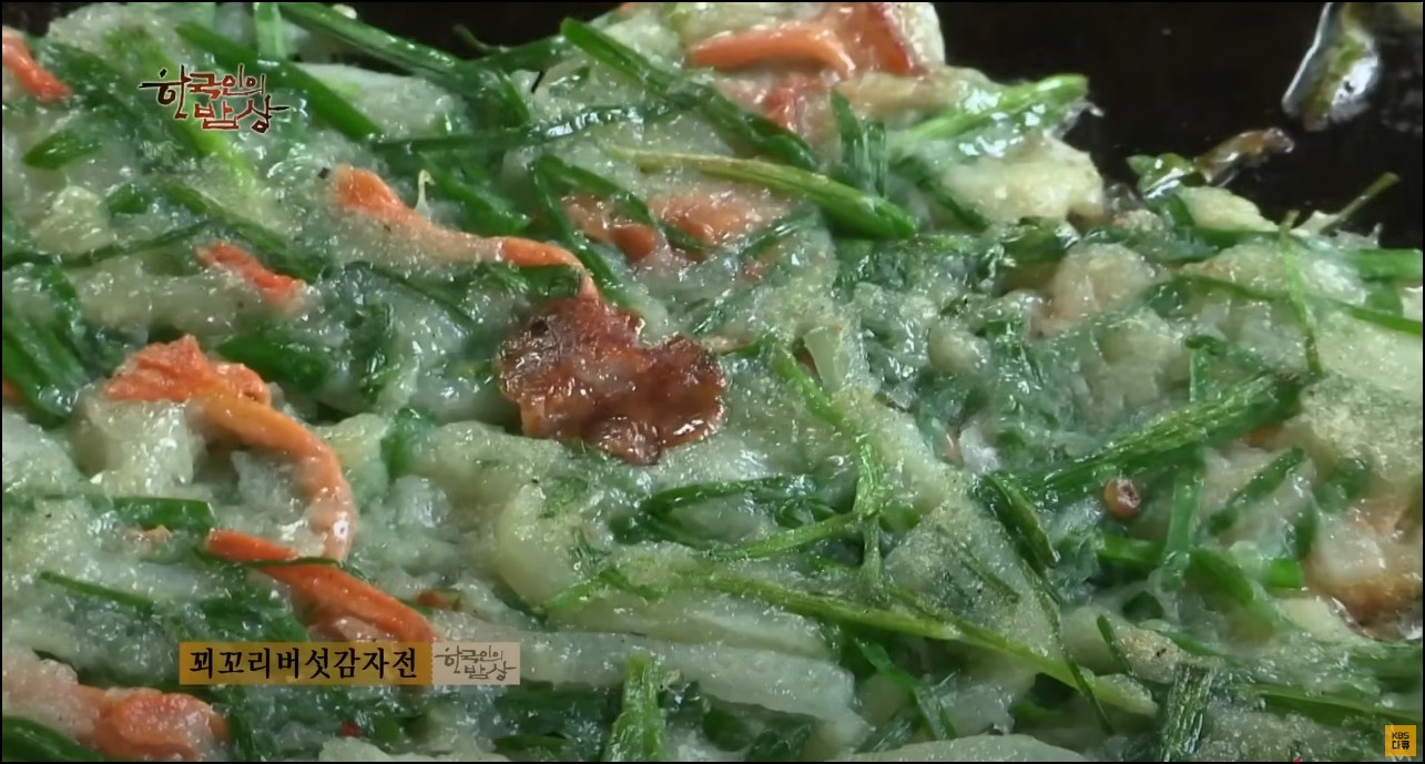 이 버섯이 나올때 감자 수확철이라서 감자를 갈아넣고 함께 전을 부치실거라고 한다.