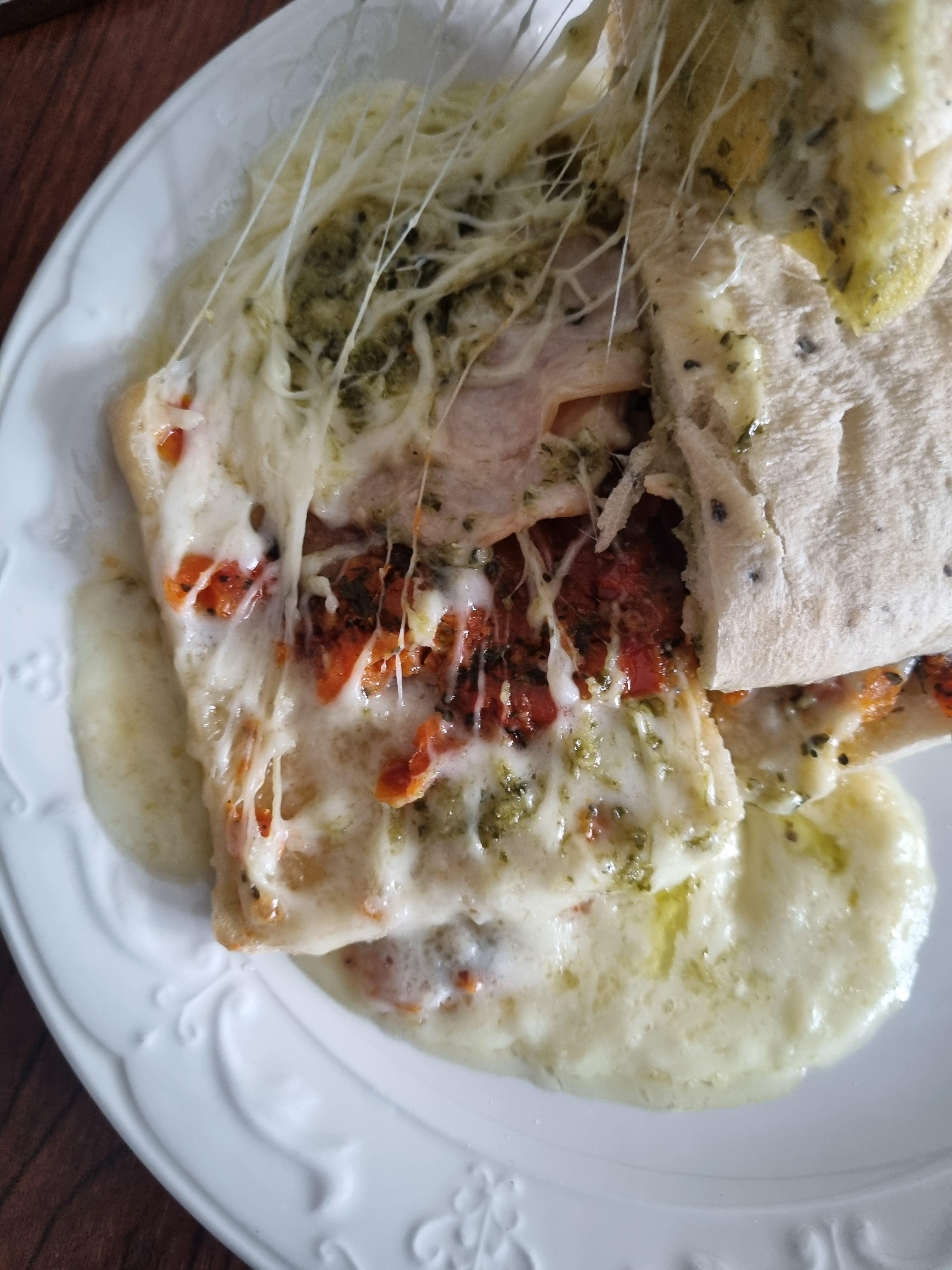 나는 암것도 안끼워먹고 에어프라이어도 아니고 그냥 전자렌지에 치즈 녹을때까지 돌려서 먹었다...