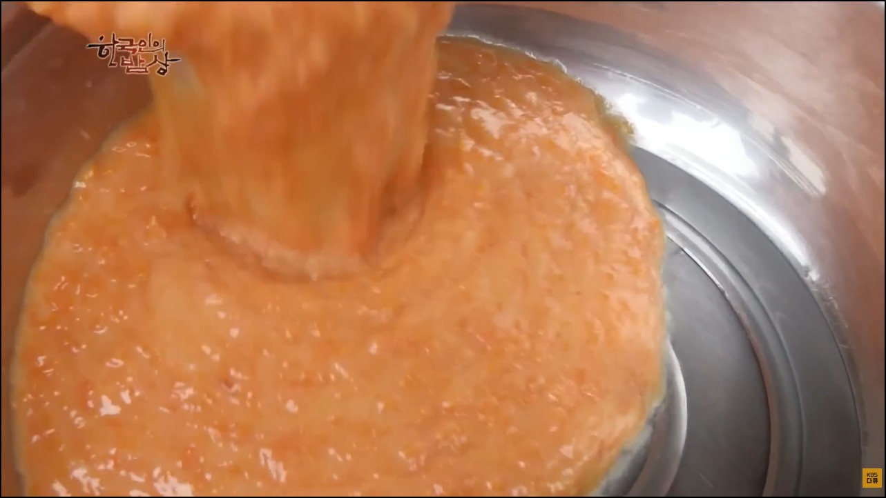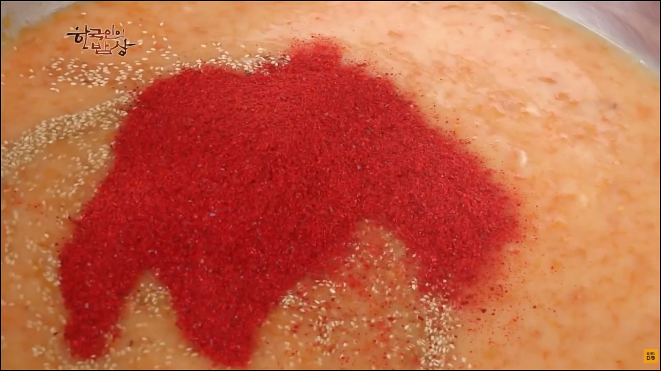 깨랑 고춧가루....단맛은 늙은호박에 단맛이 있으니까 따로 안넣으셨을듯...집에서 넣을때는 늙은 호박의 맛을 보고 청을 넣던지 단맛을 맞춰주면 되고...액젓같은 것들도 안들어갔으니 천일염으로 간을 맞춰주고....