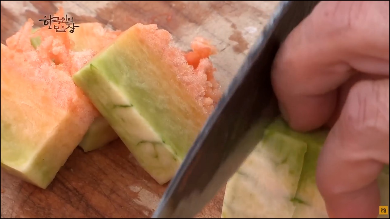 무처럼 썰어서 만드는 늙은호박 김치