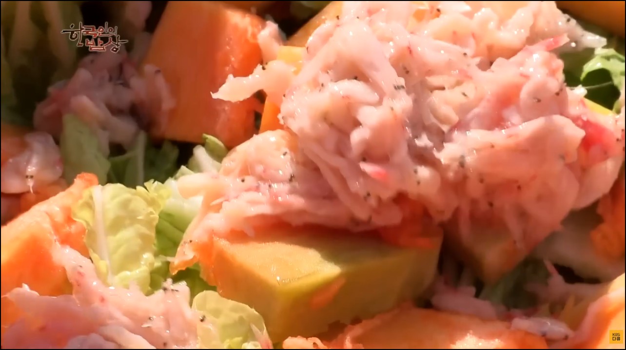 그리고...이 푸른채소는.....갓 일까? 그리고 그옆에 거뭇한 것은 청각 같음?