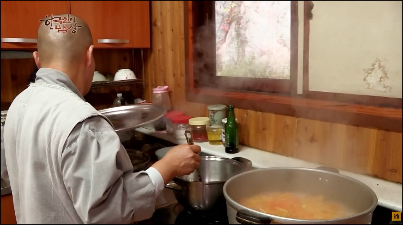절에서는 오신채(파, 마늘, 달래 같은 향이 강한 채소)를 넣지 않은 김치를 만드는데 이 늙은 호박으로 풀을 쒀서 김치에 넣어주면 익었을 굉장히 시원한 맛이 나고 맛있다고 하신다.