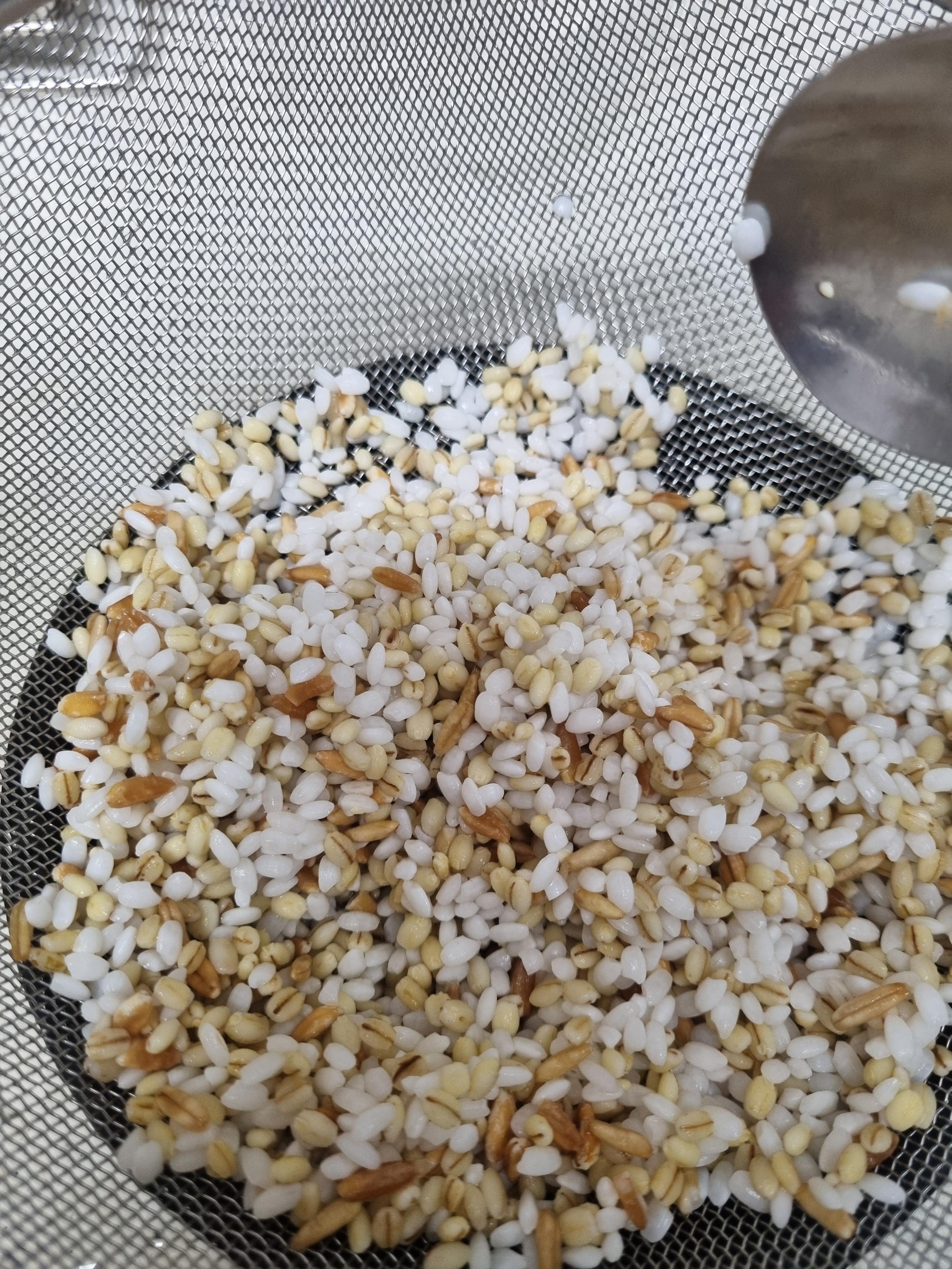 물기가 다 빠진 쌀을 넣고 함께 갈아준다.