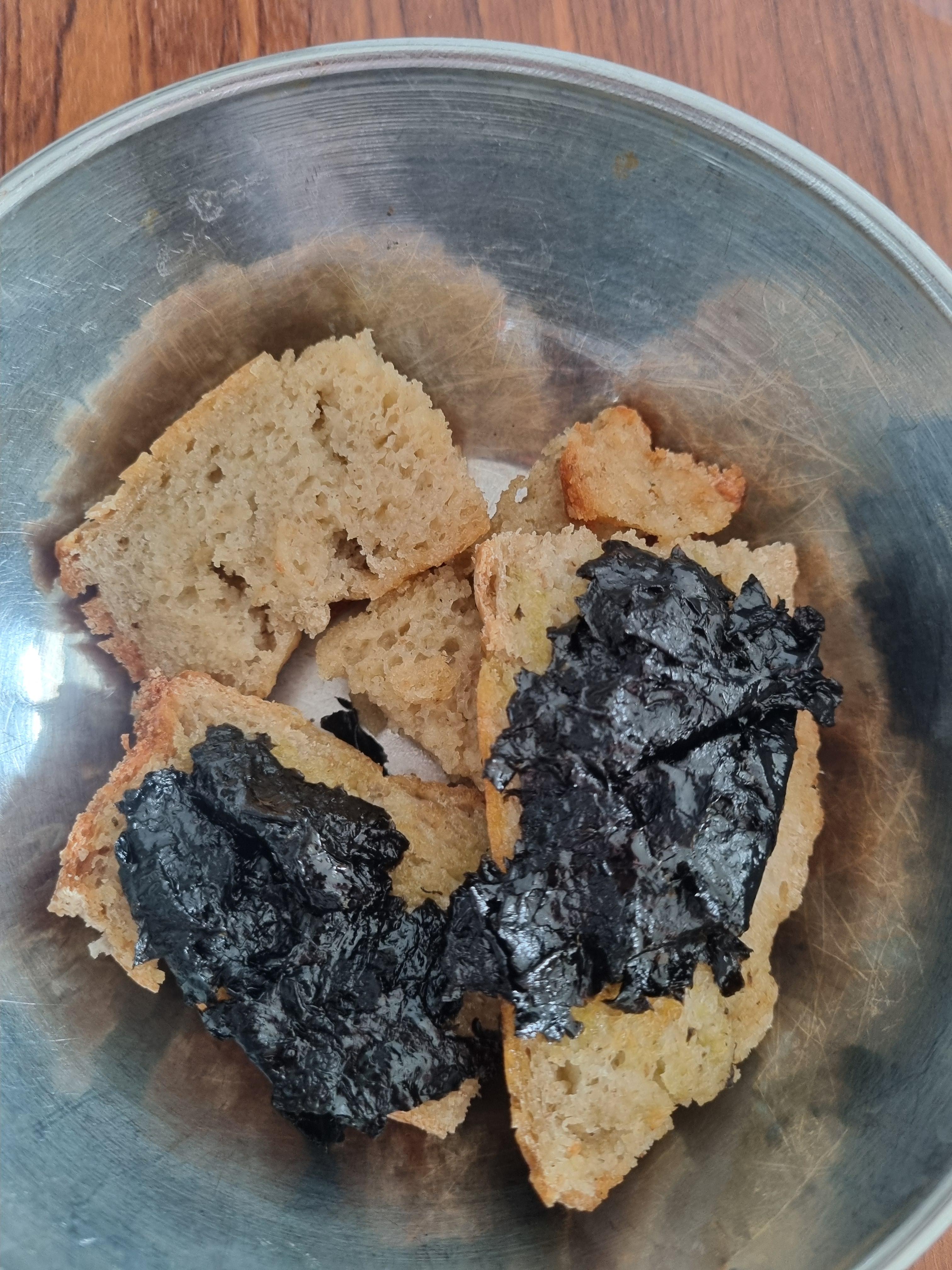 내가 만든 잡곡쌀로 만든 빵에 위에 소스들 끼얹어서 구워주기......