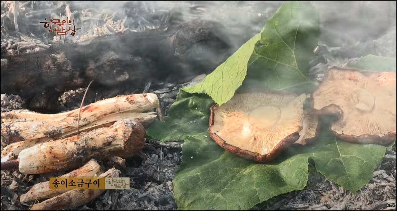 송이는 배를 살짝갈라 굵은 소금을 끼워넣고 장작불에 올려 은근하게 익혀내서 먹는 것이다.